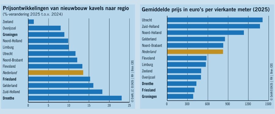 Actuele gemiddelde kavel prijzen per provincie. ( bron: DvhN 2026-03)